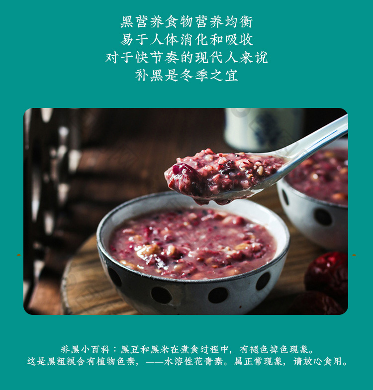 條 碼:6972761600581 規(guī) 格:2kg,250g/袋*8 包 裝:抽真空 配 置:黑豆、黑麥仁、黑糯米 黑苦蕎、黑米、黑小米 各1袋,黑金粥2袋 盒尺寸:39cm*9.5cm*28.5cm 箱重量:14.7kg 6盒 箱尺寸:60*40*30(0.072方)